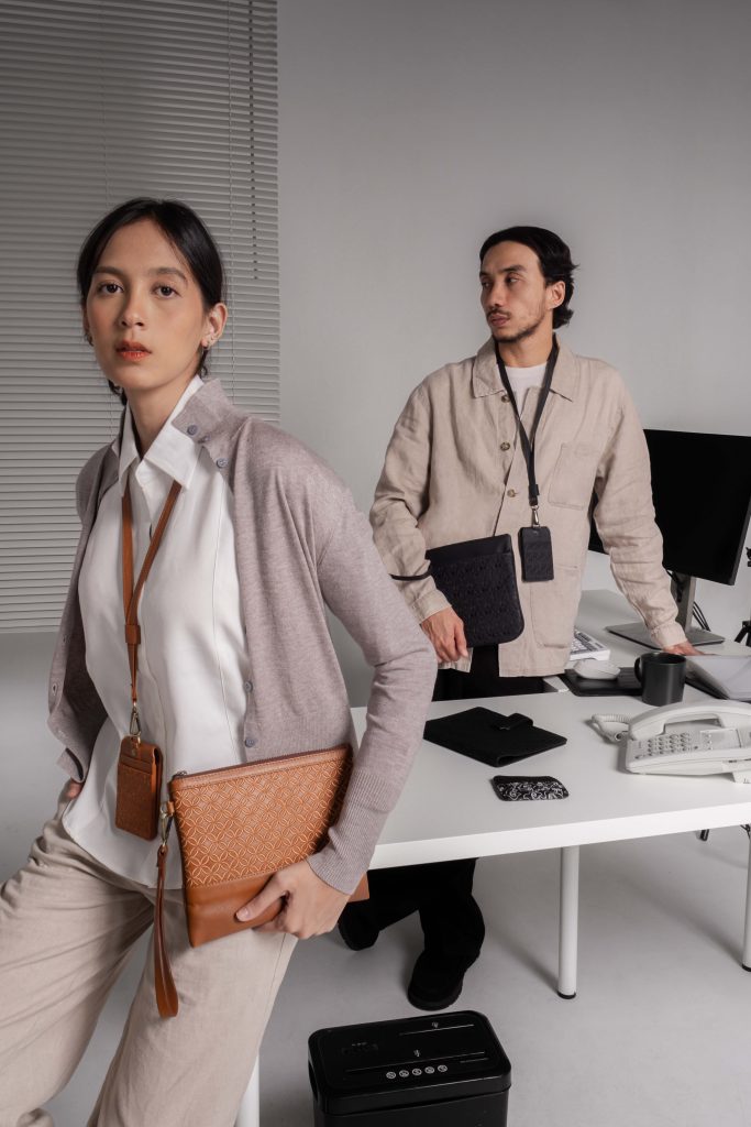 Featuring two muses—a man and a woman—the session showcased how Gammara bags naturally complement both formal office attire and more casual workwear.