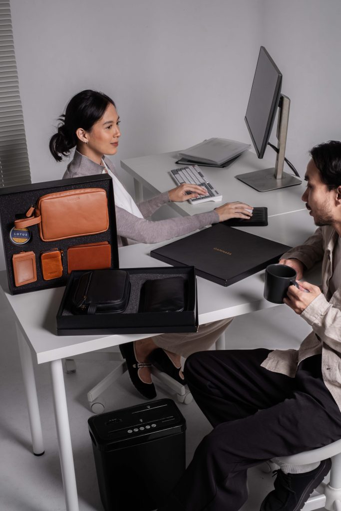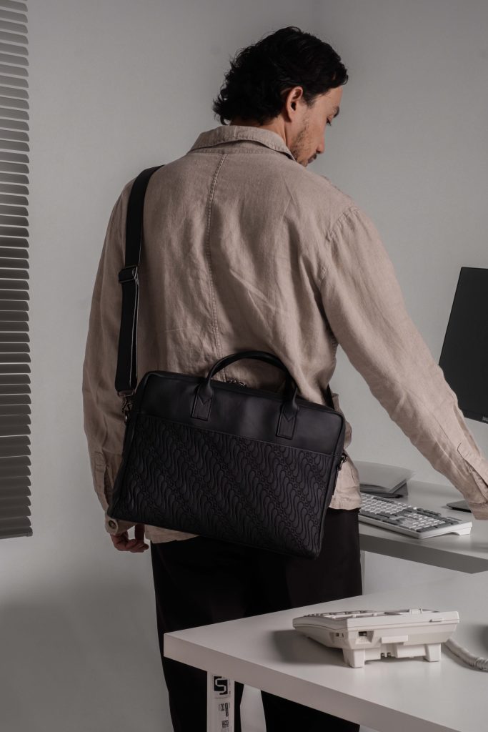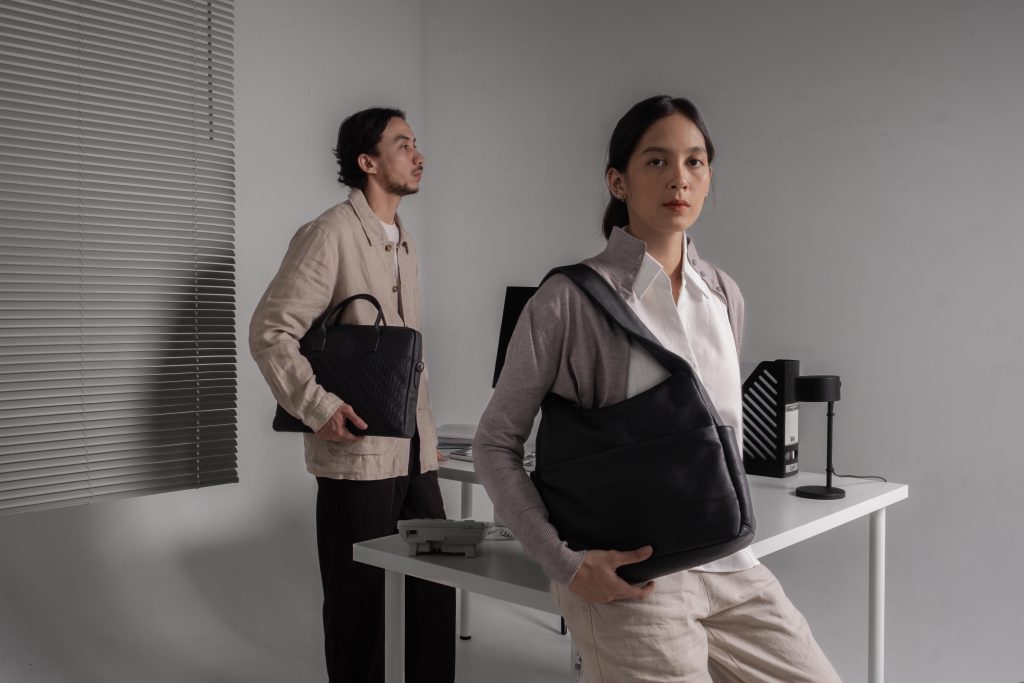 Featuring two muses—a man and a woman—the session showcased how Gammara bags naturally complement both formal office attire and more casual workwear.