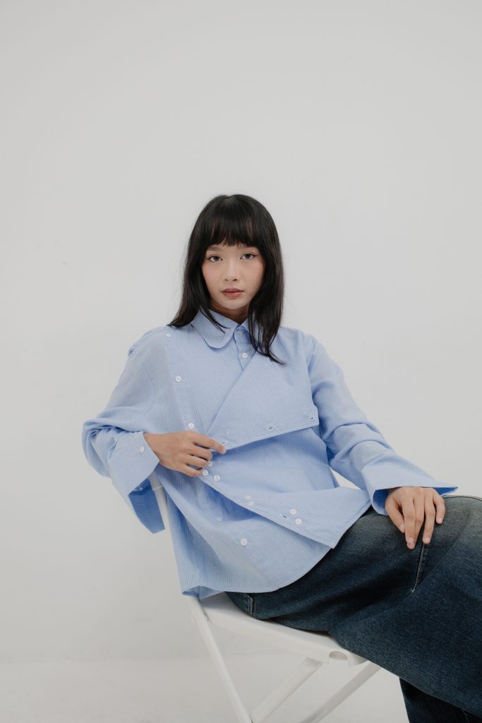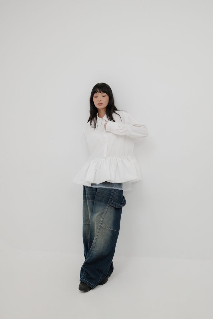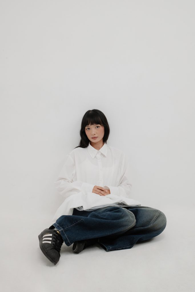 The muse’s edgy-chic presence showing that Humine’s pieces are more than just basics—they are timeless essentials with character, capable of transforming depending on how they are worn and captured.