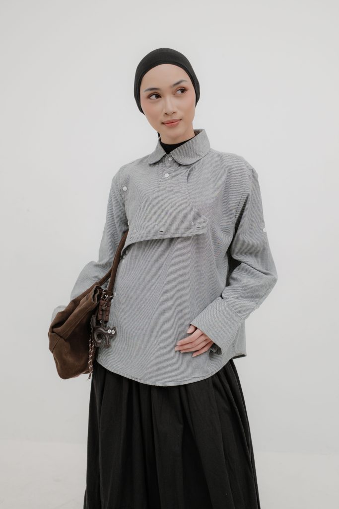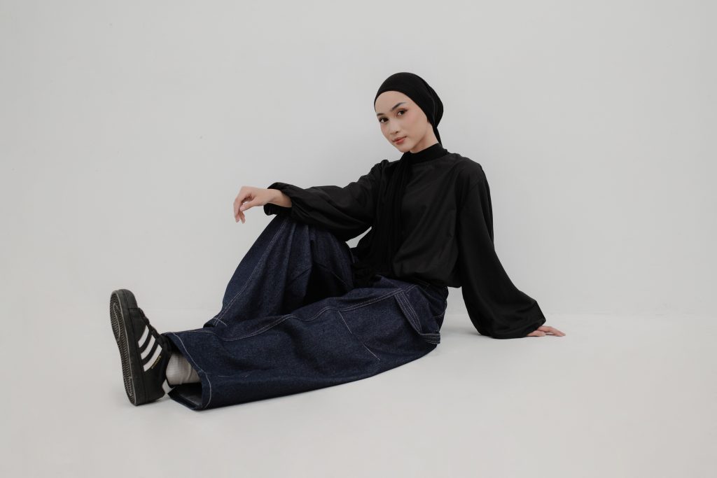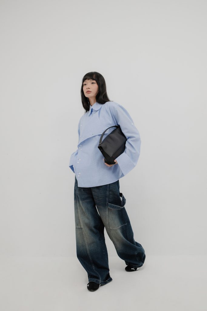 The muse’s edgy-chic presence showing that Humine’s pieces are more than just basics—they are timeless essentials with character, capable of transforming depending on how they are worn and captured.