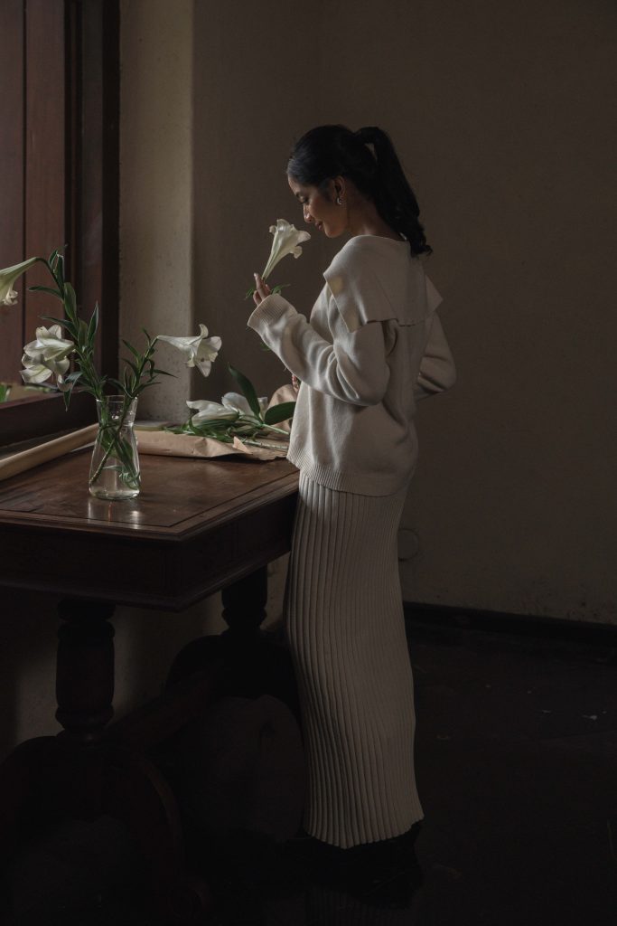 The result is a beautifully curated story, told through the lens of style, elegance, and authenticity. This image reflects the essence of our photoshoot—an intimate moment that brings the world of Poise to life.