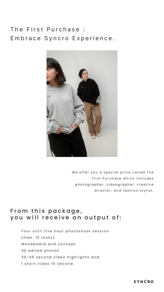 Worry came out as nothing, meet The First Purchase. Think of it as a first date with Syncro – a chance to get to know each other. A package designed not just to meet your expectation, but also redefine them. It’s more affordable than our standard pricelist, offering a low-risk opportunity for you to experience a permissible excellence result. Limited to only the first three registrants that submit through our website form. Step closer, explore possibilities. We bridge your dreams through creativity.